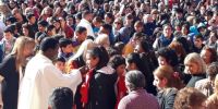 Un sol radiante acompañó el desarrollo de la Santa Misa, presidida por el Obispo Diocesano, Mons. Luis Urbanc, y concelebrada por sacerdotes del Decanato Capital, en el escenario levantado frente al atrio de la Catedral Basílica y Santuario de Nuestra Señora del Valle.