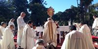 Durante la mañana del domingo 23 de junio, una gran cantidad de fieles de las comunidades parroquiales de Capital se congregaron en el Paseo de la Fe, para celebrar la Solemnidad de Corpus Christi, en el marco del Año Diocesano de la Espiritualidad de los Discípulos Misioneros, último del trienio de preparación para vivir el Jubileo por los 400 años del hallazgo de la Imagen de la Virgen del Valle, el Año Mariano Nacional y el IV Congreso Mariano Nacional.