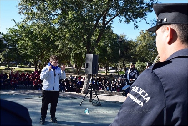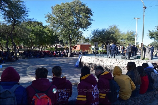 En la oportunidad, efectivos de la Dirección Drogas Peligrosas de la Policía de la Provincia organizaron una caminata en la que participaron alumnos de las Escuelas Municipales N° 1 “Maestra María Emilia Azar” y N° 2 “Romis Amado Raiden”, del Departamento Valle Viejo, que luego de transitar varias arterias de la localidad de San Isidro acompañados por Cadetes de la Escuela “Tte. Gral. Juan Domingo Perón” y efectivos de distintas dependencias de Jefatura de Zona Norte de la Unidad Regional N° 1, culminó en la Plaza El Aborigen, donde compartieron un desayuno, y personal de la Banda de Música de la Policía de la Provincia brindó una retreta musical.