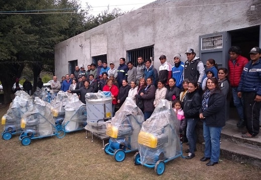 El ministro de Producción Daniel Zelarayán y técnicos del organismo a su cargo hicieron entrega el viernes pasado de las 21 ordeñadoras portátilesy una enfriadora que recibieron pequeños productores miembros de una asociación de la localidad de Navaguín (Ancasti), en el marco de un proyecto del Programa de Desarrollo Rural Incluyente (PRODERI), que ejecuta la Secretaría de Agricultura, Ganadería y Agroindustria.