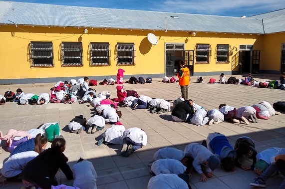 Con los alumnos de ambos turnos se pusieron en práctica diferentes medidas de seguridad en caso de evacuación como posiciones y puntos de reunión, entre otras acciones. Mientras que con el cuerpo de docentes del establecimiento se logró avanzar en la confección de un plan de contingencias para inundaciones.