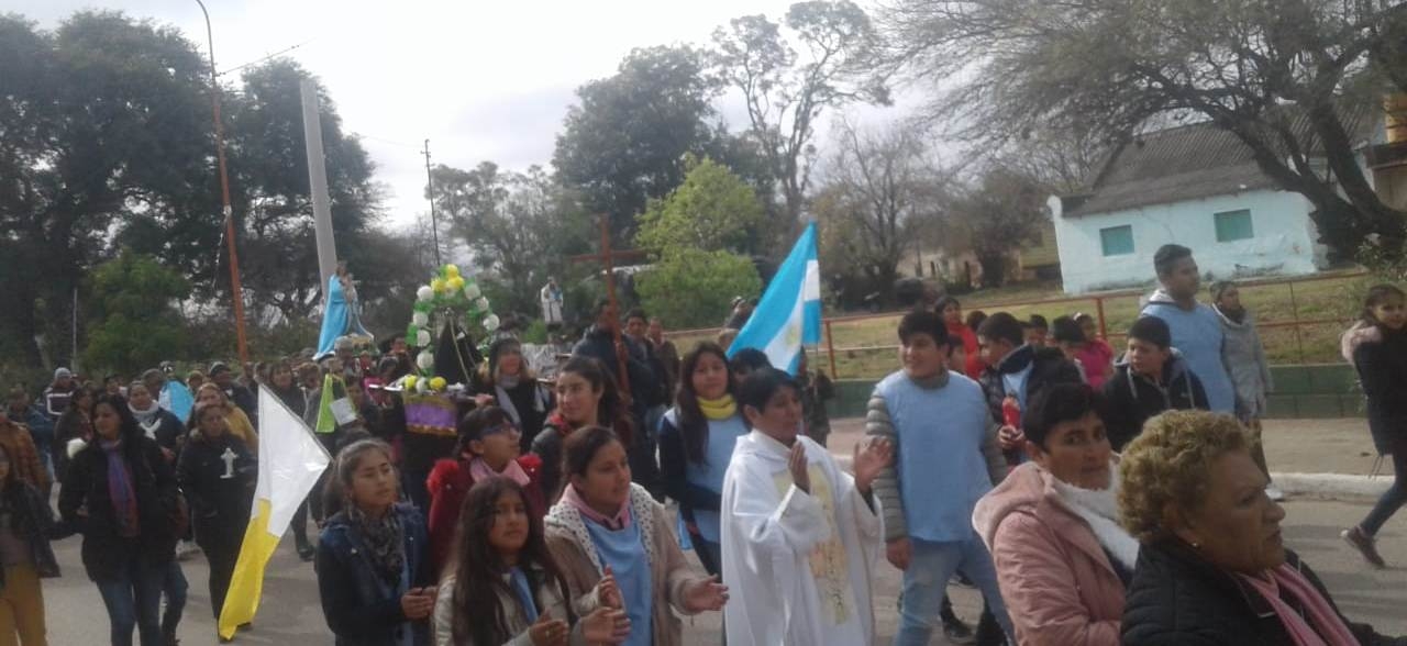 Luego de la Santa Misa, inició la procesión con las imágenes visitantes y la Patrona del lugar por las calles del pueblo.