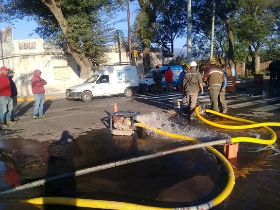Los técnicos de Aguas de Catamarca están trabajando en la reparación, con la colaboración de la Municipalidad de Valle Viejo que puso la máquina excavadora y desvió el tránsito. Una vez que finalice la reparación el lugar deberá quedar vallado hasta que se seque el material con el que se tapa", señala un comunicado difundido por la empresa a través de Facebook.