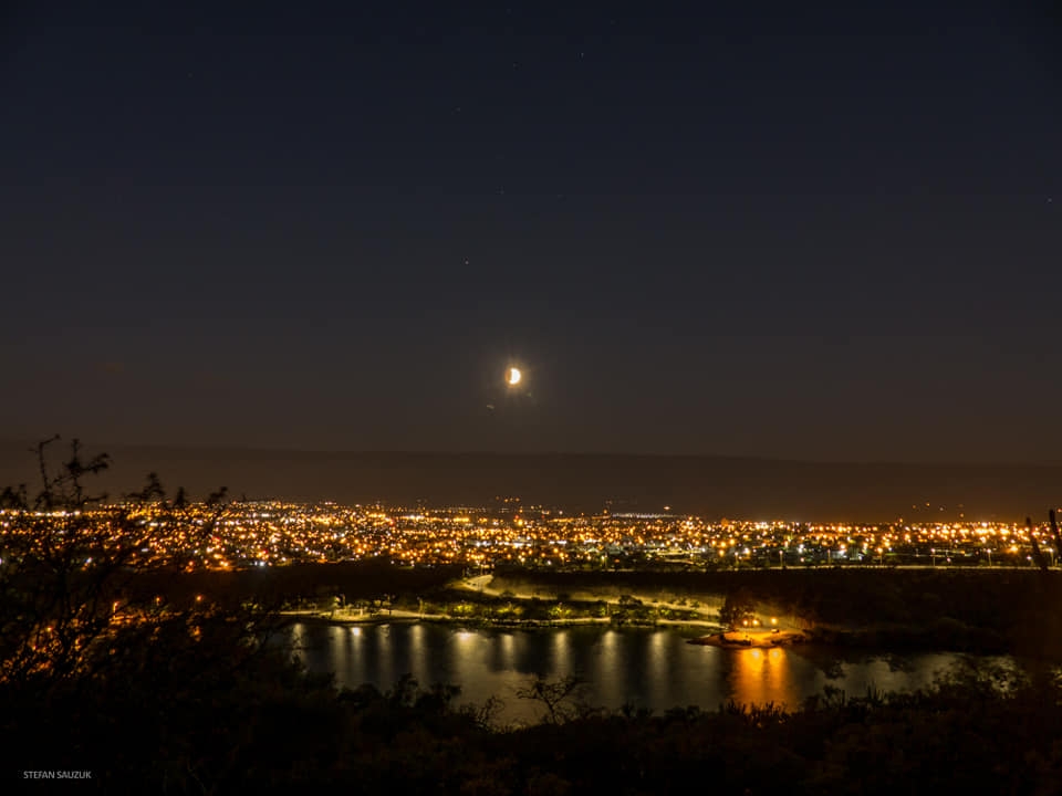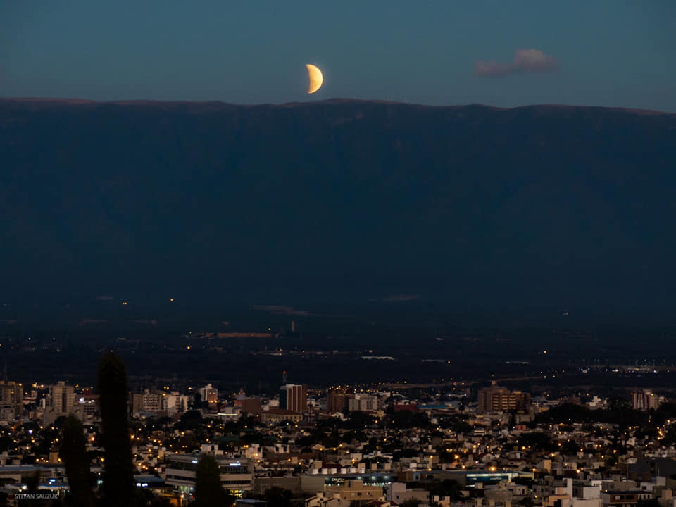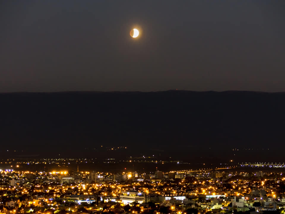 Las imágenes fueron captadas anoche desde el dique El Jumeal por Stefan Sauzuk, donde puede visualizarse el eclipse parcial de lunes que se pudo observar en distintos rincones del país.