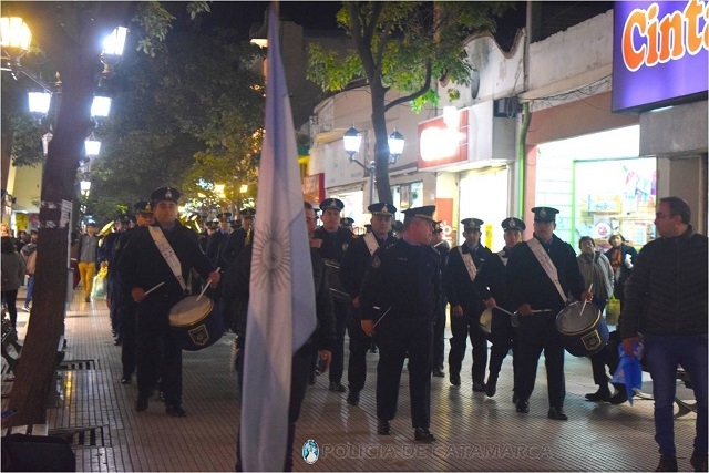 En la ocasión, los efectivos recorrieron la Peatonal hasta la Plaza 25 de Mayo entonando cánticos populares e invitando a las personas que ocasionalmente transitaban por el lugar a alentar a nuestra Selección, y gente de todas las edades se unió a la propuesta, que surgió como una manera de acercar la Institución Policial hacia la comunidad, flameando bien en alto, con alegría y orgullo la Bandera Celeste y Blanca.