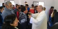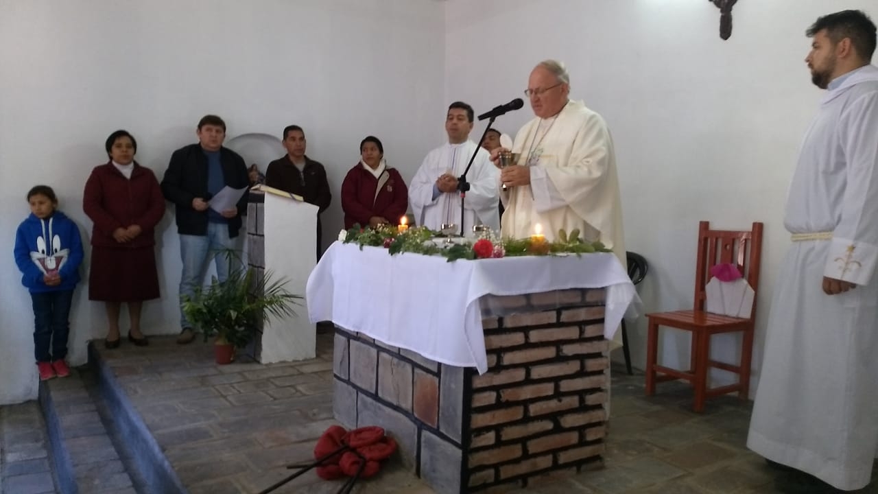 El Obispo destacó que "para la construcción de esta Capilla hayan utilizado material de la zona. Estas piedras lajas, tan prolijamente cortadas, representan a cada uno de ustedes, porque Cristo llamó Piedra (Pedro) a un apóstol. Y nosotros estamos llamados a ser piedras, pero piedras vivas donde se edifica nuestra Iglesia".