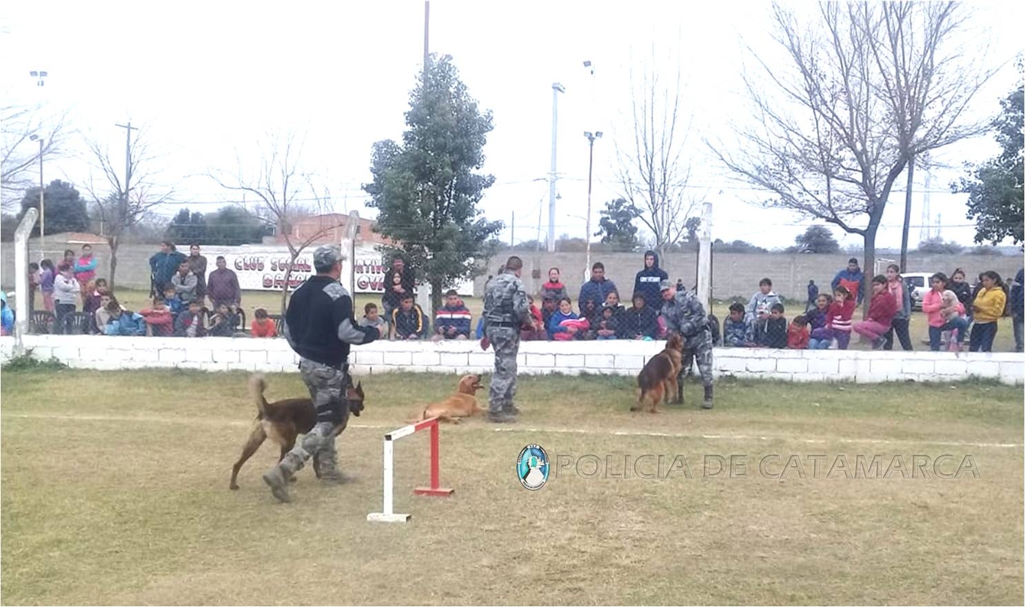 Fue con motivo de los festejos por el tercer aniversario de la Escuela de Fútbol "Juan Carlos Pilla". La División de Canes fue recibida con gran entusiasmo por los niños que concurren al lugar y sus familiares, que pudieron apreciar una demostración de las diferentes tareas que los efectivos realizan con canes adiestrados.
