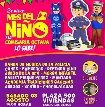 La convocatoria, es el día sábado 3 de agosto, en la Plaza Los Ceibos, del barrio 500 viviendas, a partir de la hora 14, donde participarán de distintas propuestas que efectivos de la Banda de Música, Policía Montada, División Canes y Bomberos de la Policía de la Provincia, el Ballet Piriqui Pérez, Academia Tradicional Gaucha, Murga Infantil y personal de Defensa Civil llevarán a cabo ese día tan especial.