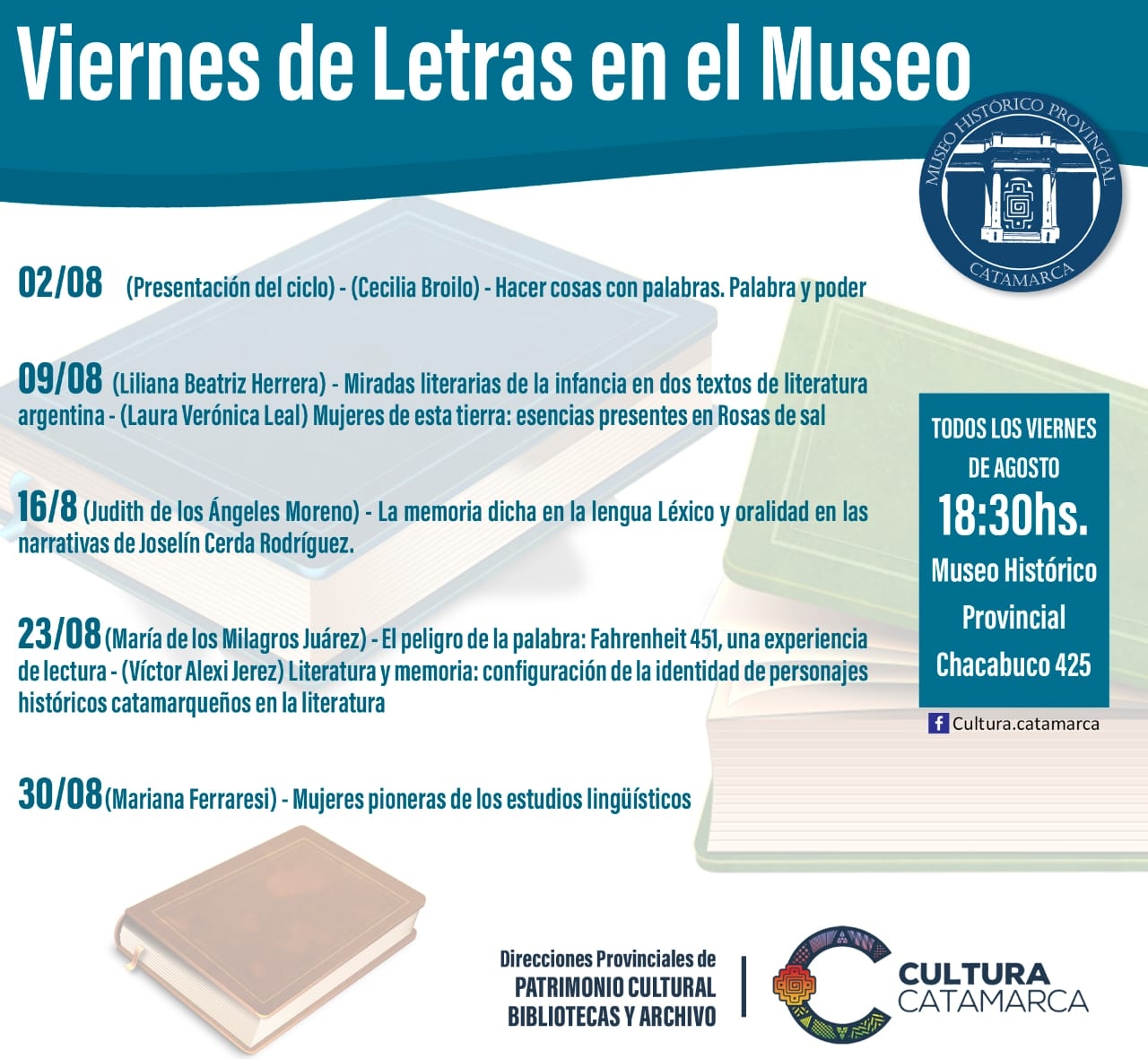 Este ciclo de charlas se llevará a cabo todos los viernes de agosto a las 18.30 en el Museo Histórico Provincial de Catamarca (Chacabuco 425).