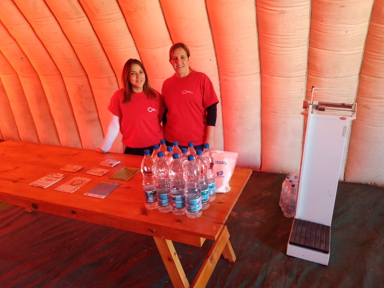 En una carpa de Defensa Civil, colocada para la ocasión, el equipo del Programa de Enfermedades Crónicas No Transmisibles, llevó a cabo a los participantes peso y talla; y se entregaron agua y fruta. Además, se realizo consejería con folletería.