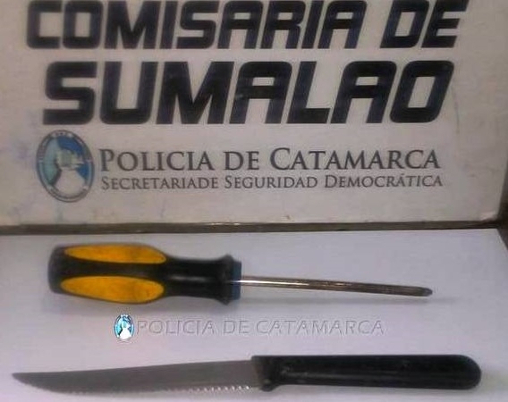 Al realizarle la requisa correspondiente encontraron entre sus prendas de vestir un destornillador de colores amarillo y negro, y un cuchillo tipo tramontina, que quedaron en calidad de secuestro, en virtud de lo cual esta fue trasladada y alojada en la Seccional por término de Ley.