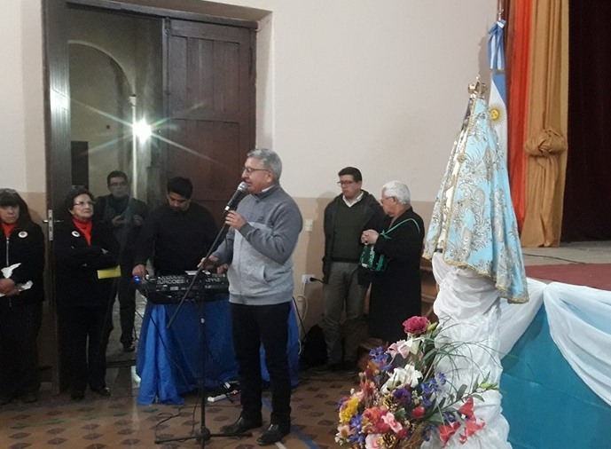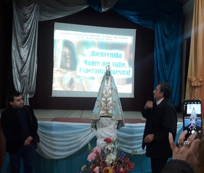 Con cantos y vivas fue llevada hasta el salón de actos, donde hubo palabras de bienvenida a cargo de un docente; en tanto que el Director General del Centro Educativo y Cultural Diocesano Virgen del Valle, Pbro. Oscar Tapia, se refirió a la presencia de la Virgen en Catamarca.