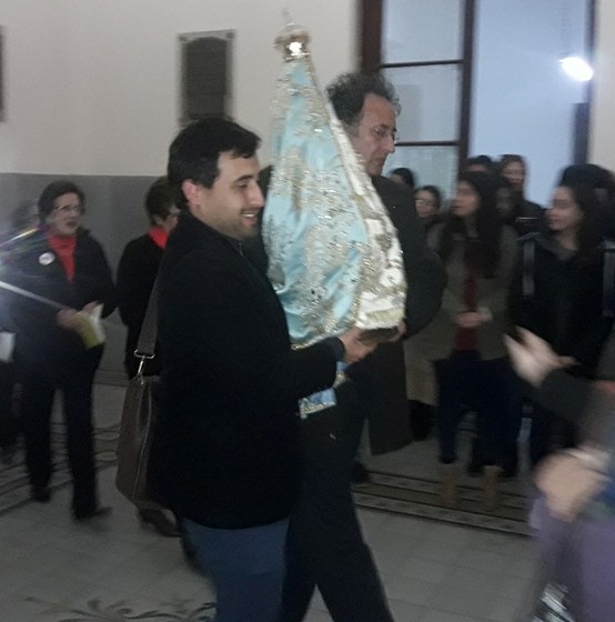 La Imagen peregrina inició su visita a la comunidad educativa, el lunes 12 de agosto, oportunidad en que fue recibida en la puerta del antiguo Seminario, haciendo su ingreso al edificio en manos de los rectores de los Institutos de Estudios Superiores que funcionan en el lugar.