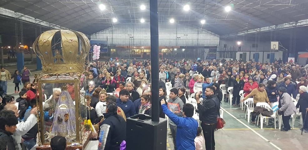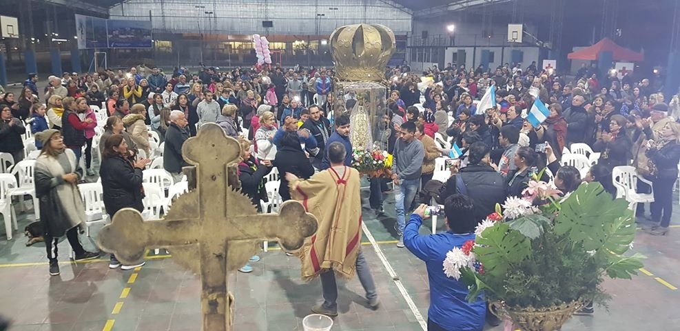 La Santa Misa fue presidida por el párroco, Pbro. Jorge Micheloud, en el polideportivo Monseñor Ignacio Herrera, cuyas instalaciones fueron colmadas por los devotos de tierras tucumanas.