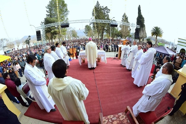 El viernes los actos centrales se realizaron en el Paseo de la Fe y la gente que asistió a la misa presidida por Monseñor Luis Urbanc pudo seguir la misma cómodamente desde la plaza Retamozo que hace poco tiempo fue totalmente renovada, algo que los asistentes de otras provincias supieron valorar.