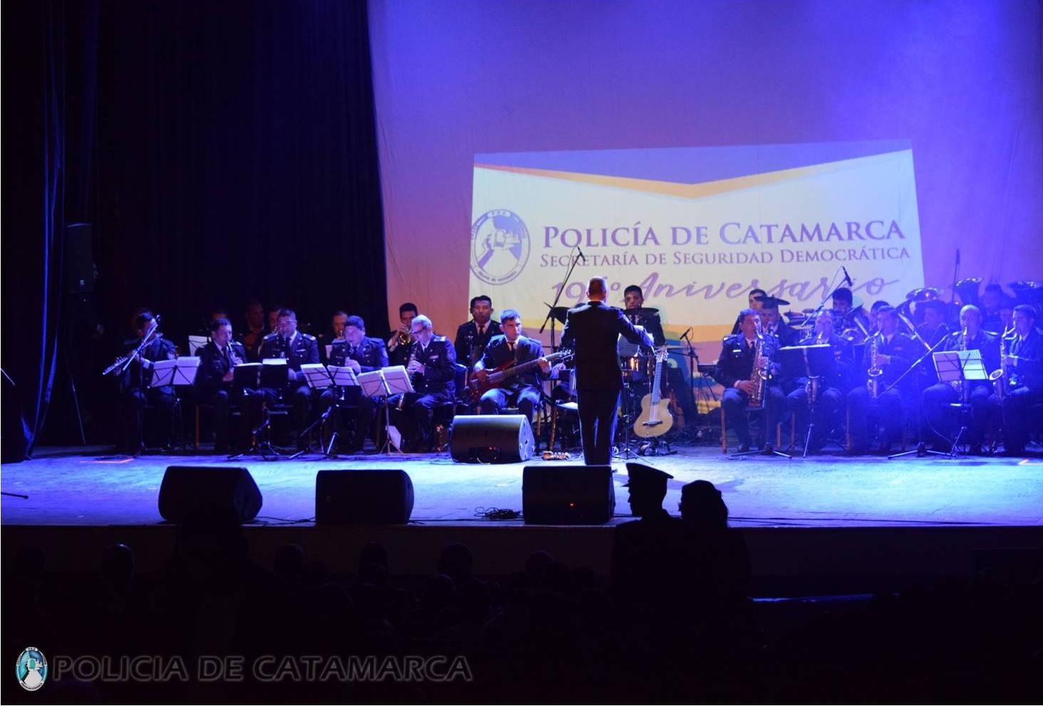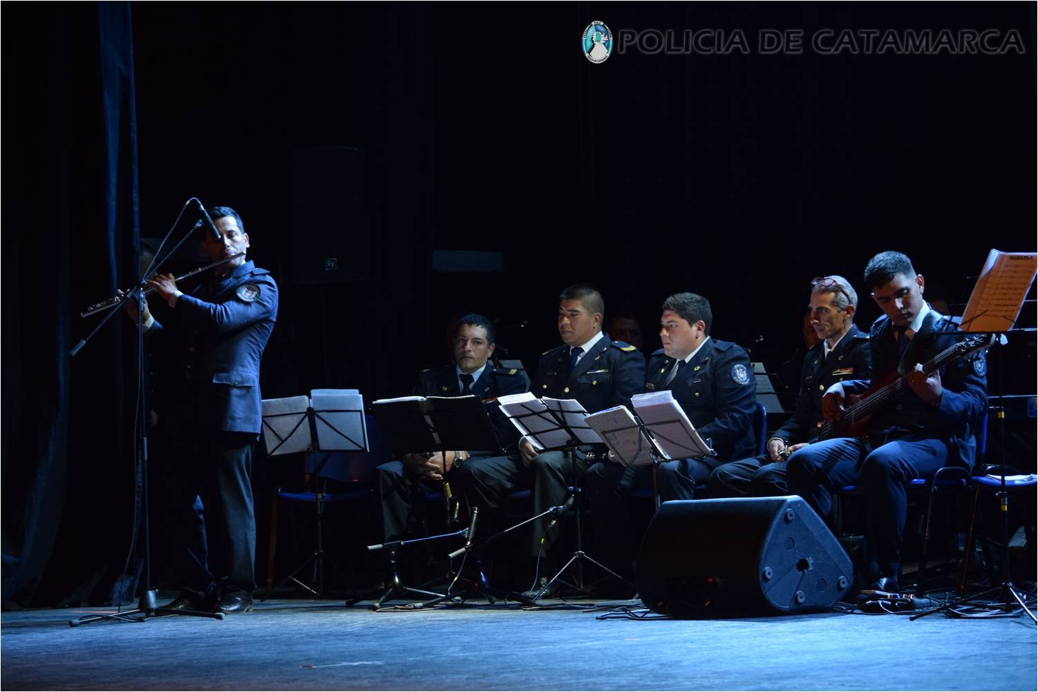 Un imponente número de personas, se dio cita en el Cine Teatro Catamarca para escuchar a los integrantes de la Banda de Música que deleitaron al público presente con diversos géneros musicales, como así también al personal policial y administrativo de otras dependencias, y a un alumno Cadete con su conjunto, que se sumaron a la propuesta cultural aportando talento en la ejecución de distintas canciones populares.