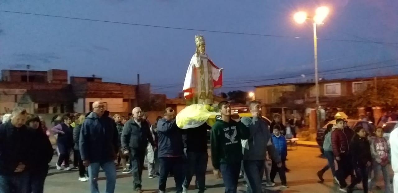 Los actos litúrgicos del domingo se desarrollaron en horas de la tarde, con la celebración de la Santa Misa y la procesión por las calles del sector, ambas presididas por el párroco, Pbro. Sergio Chumbita.