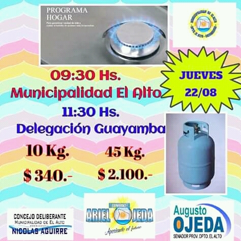 El precio de las garrafas de 10 Kg., es de $340, y el cilindro de 45kg, es de $ 2100.