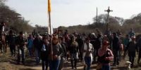 Seguidamente, detrás de la cruz procesional, se encolumnaron las Imágenes de los Santos Patronos de las comunidades visitantes con sus respectivos peregrinos. El misachico, organizado por los docentes y los niños de la escuela, hacía sonar la guitarra, el bombo y la quena, poniendo clima de fiesta a la jornada. También se rezó el Santo Rosario y se entonaron cánticos.