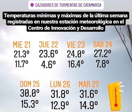 "Estas son las temperaturas mínimas y máximas registradas la última semana en nuestra Sede Central CTC ubicada en el Centro De Innovación y Desarrollo, en la ciudad capital.