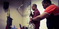 Los capacitadores oficial Inspector Juan Heredia; enfermero y técnico en Emergencia Médica Olivera Ignacio asistente en emergencia y rescate, ambos de la mencionada Dirección provincial a cargo del Crio. Inspector Rubén Aldeco.