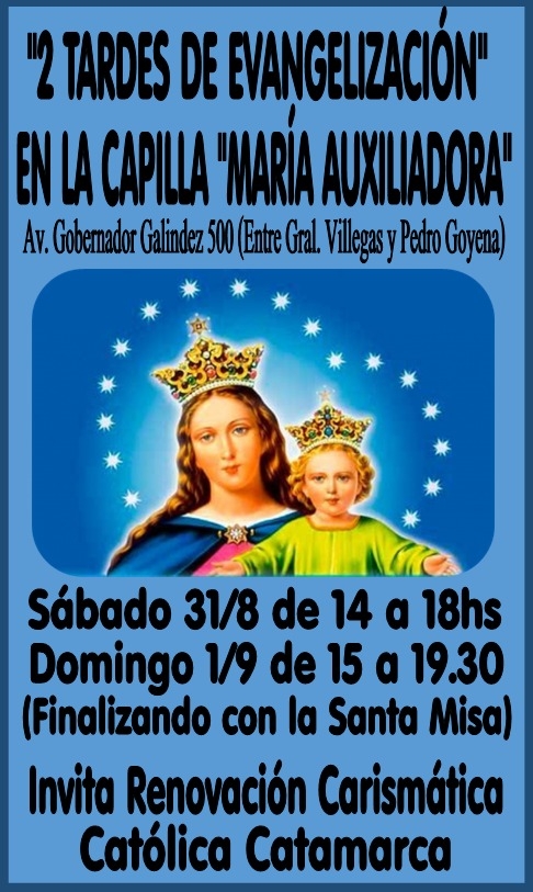 Las mismas se concretarán el sábado 31 de agosto, de 14 a 18, y el domingo 1 de septiembre, de 15 a 19.30, finalizando con la Santa Misa.