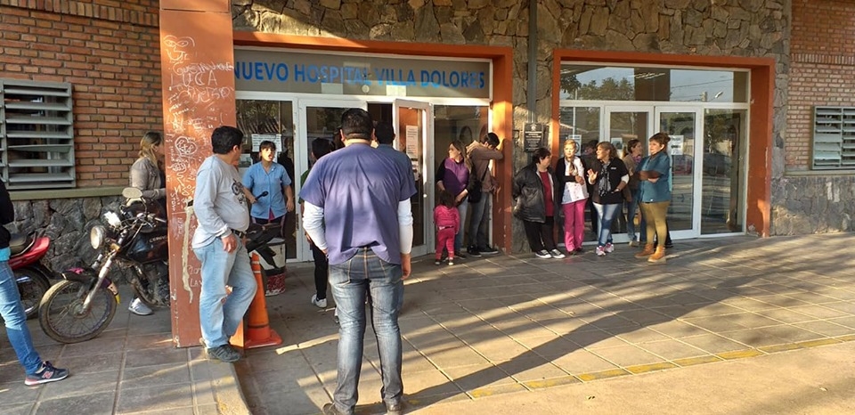 En la mañana de este miércoles, un grupo de trabajadores precarizados que prestan servicios en el Hospital de Villa Dolores, en Valle Viejo, llevan a cabo una protesta en el ingreso del nosocomio.