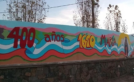 Con el asesoramiento del artista plástico Daniel Sarmiento, un grupo de voluntarios se sumó a esta propuesta y dejó plasmado el primer testimonio de amor a la Madre Morenita, en los muros del predio parroquial ubicado en calle Las Araucarias S/N, en el barrio Los Ceibos, zona norte de Capital.