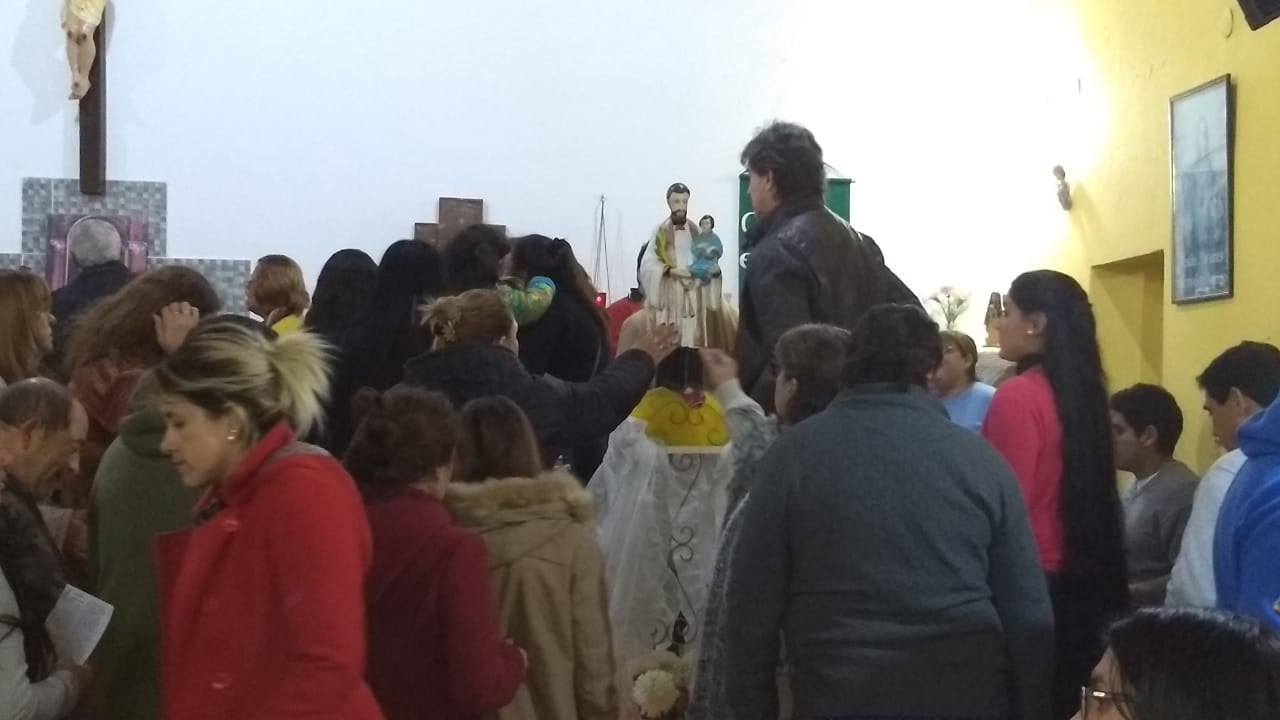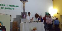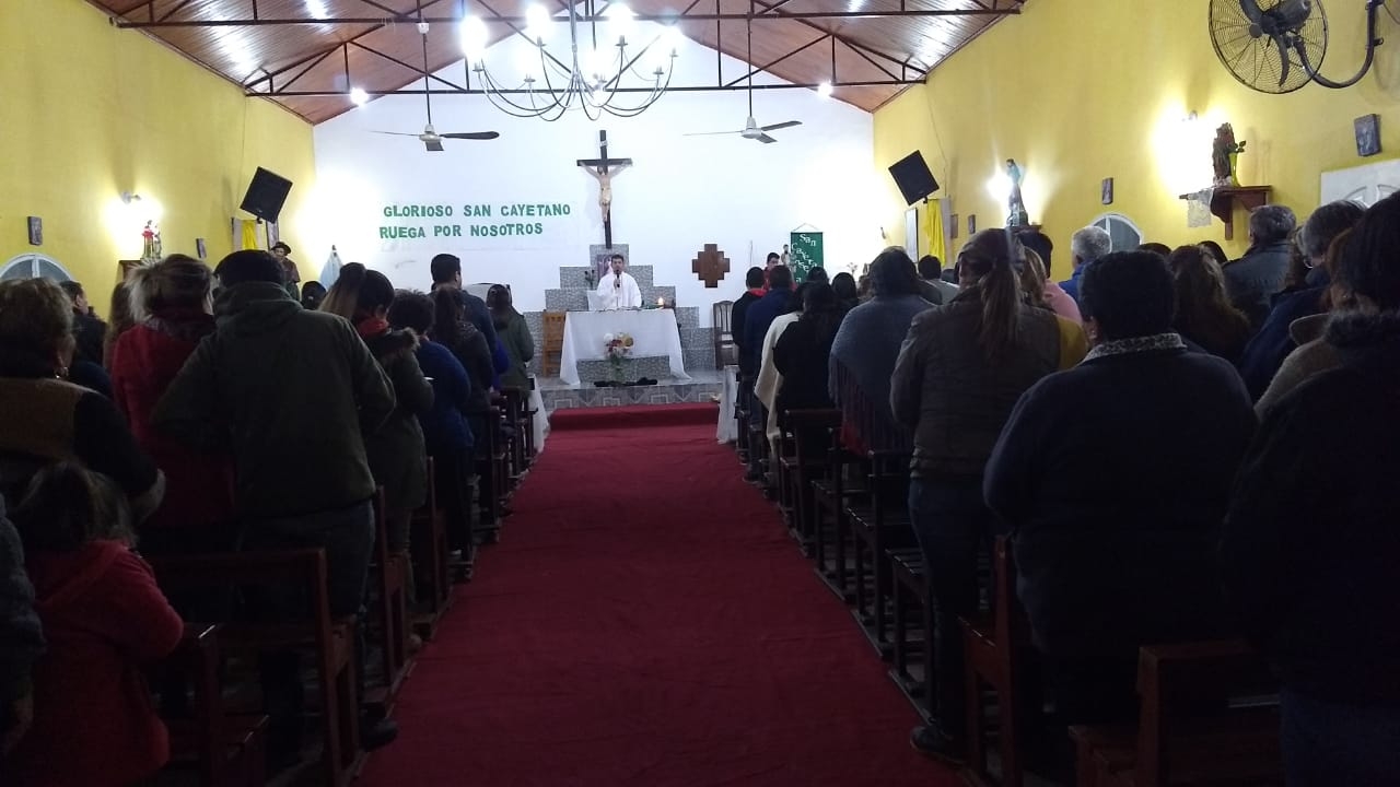 En la Capilla de San Cayetano, se cumplió la tradicional Vigilia y luego la celebración de la Santa Misa, presidida por el Párroco Domingo Chaves, para los cientos de fieles presentes.