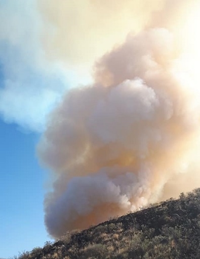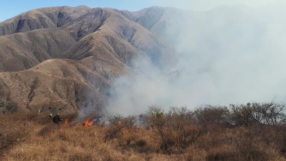 El cuerpo de Bomberos Voluntarios "Aguilas de Fuego" del departamento se encuentran abocado para tratar de sofocar el foco que tiene dos frentes y que ademas de tener un dificil acceso, se ve incrementado por las ráfagas de viento que azotaban la zona.