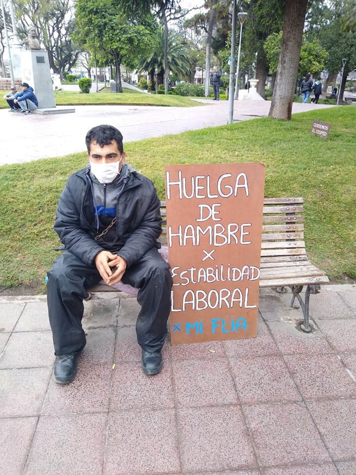 La protesta que lleva adelante desde la mañana de este miércoles es con la modalidad de huelga de hambre, por lo cual decidió coserse la boca para pedir la estabilidad laboral.