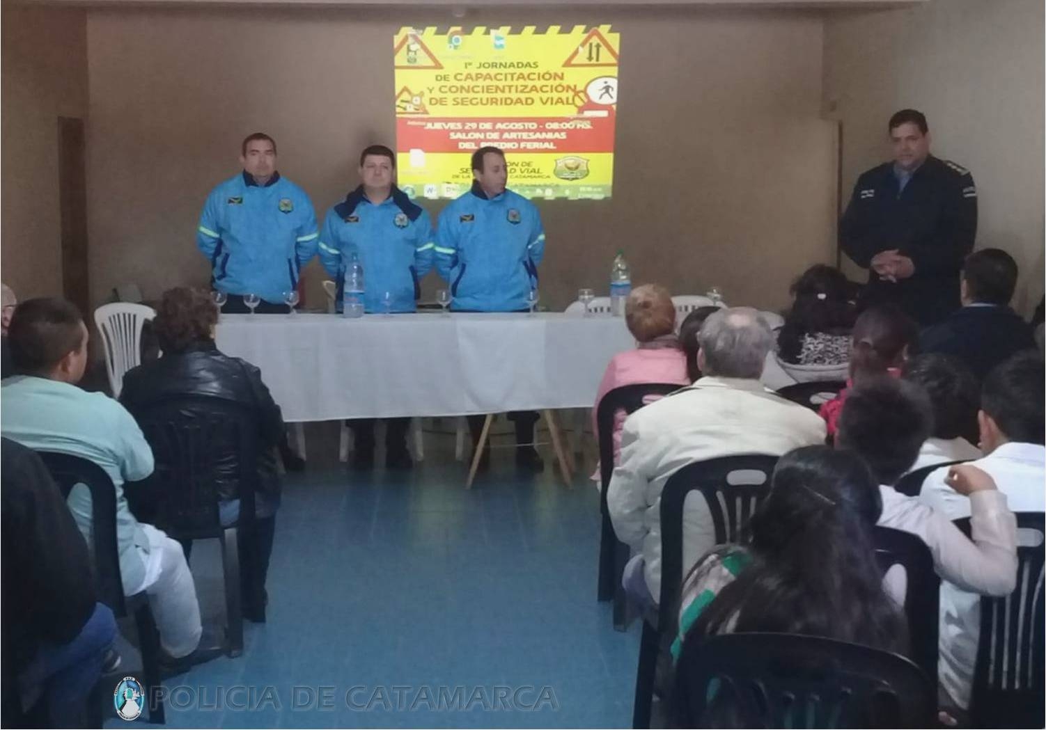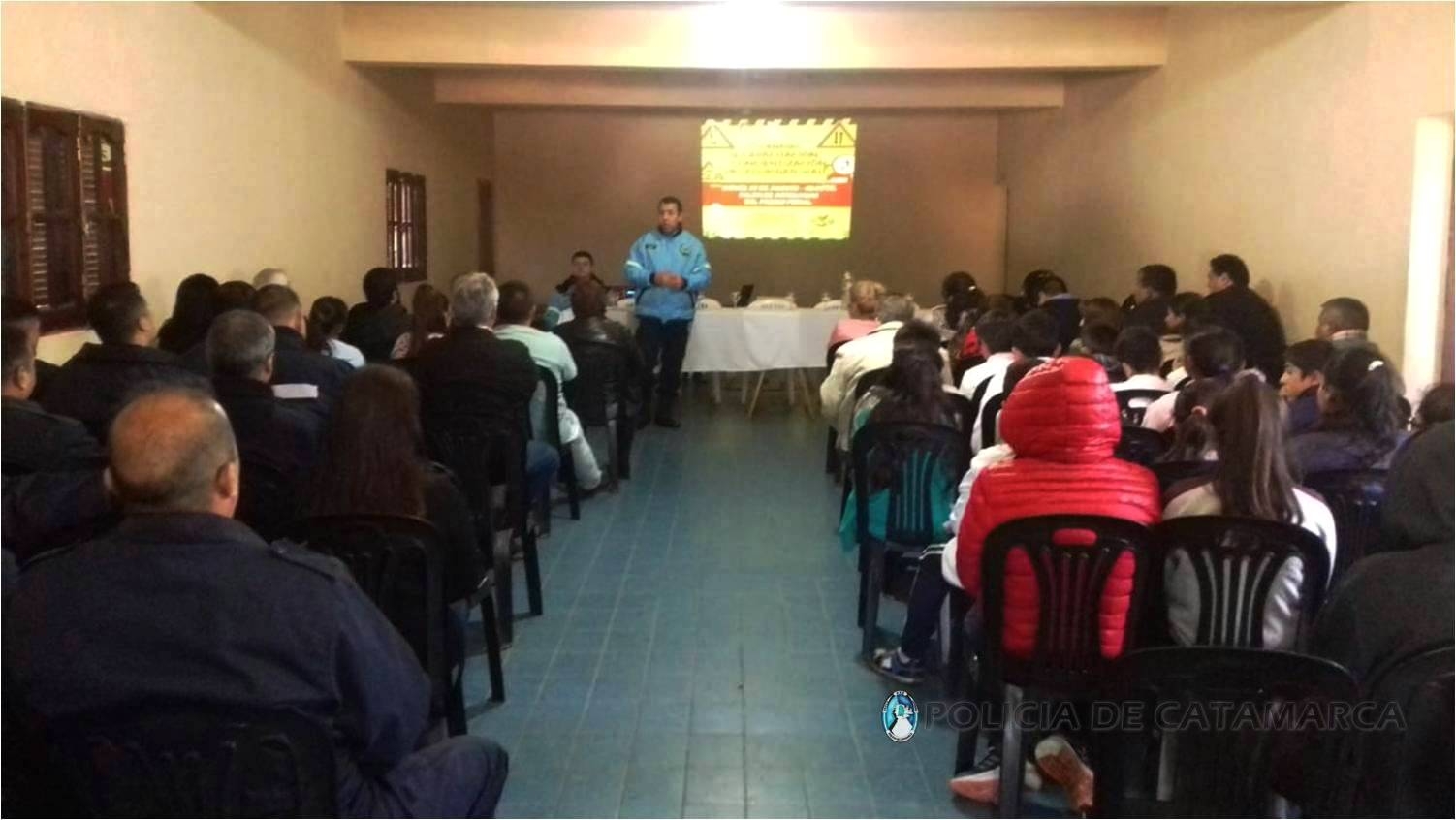 Por este motivo, efectivos de la Dirección de Seguridad Vial de la Policía de la Provincia fueron los encargados de abordar temáticas referidas a las disposiciones contempladas en la Ley Nacional de Tránsito N° 24.449, y adaptaron las exposiciones ya que participaron efectivos policiales de distintas dependencias que conforman la Jefatura de Zona "G", alumnos de la Escuela Secundaria N° 23 de la Villa de Ancasti e integrantes de otras fuerzas vivas locales.