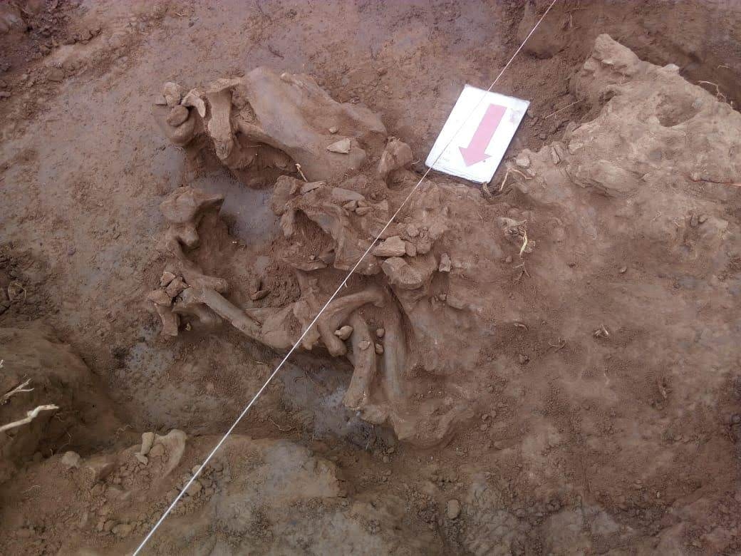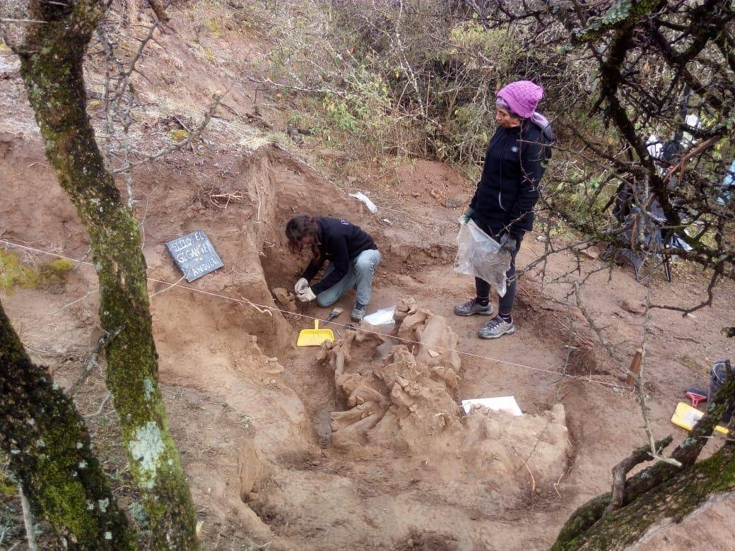 Los materiales fueron identificados como restos pertenecientes a una especie de la familia Megatheriidae (mega bestia). Los materiales se encontraban en la cercanía de un arroyo muy cerca de la superficie y con abundante vegetación, lo que ocasionó una severa erosión encontrándose en peligro de destrucción total. A pesar del paso del tiempo y los agentes destructivos, se logró recuperar ¼ del esqueleto contando con tibia y fíbula, fémur, vertebras y fragmentos coxales.