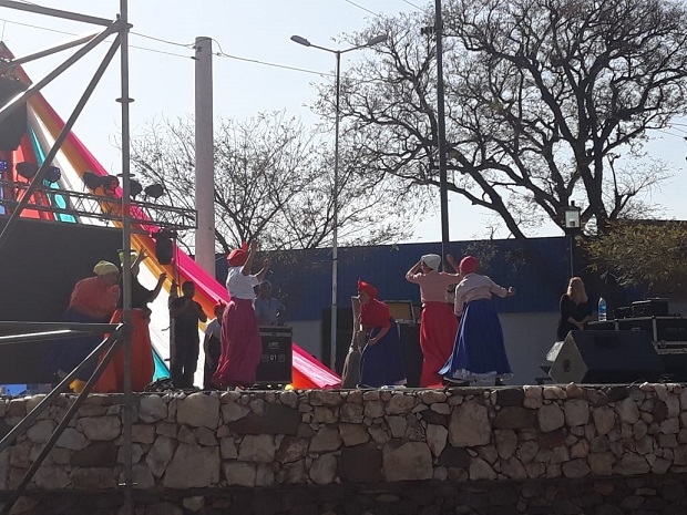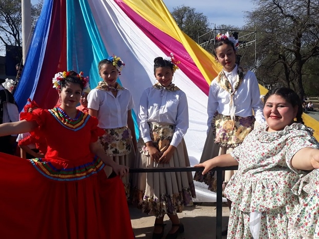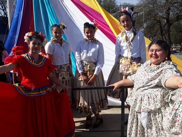 El festejo, que inició antes del mediodía, contó con la presencia de grupos de danzas típicas argentinas y de otros países, con sus respectivos y coloridos trajes.