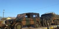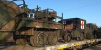 Se transportan vehículos Mercedes-Benz Unimog 416, REO, Mercedes-Benz 230G, Polaris MRZR-4 y Humvee M997A3 versión Ambulancia.