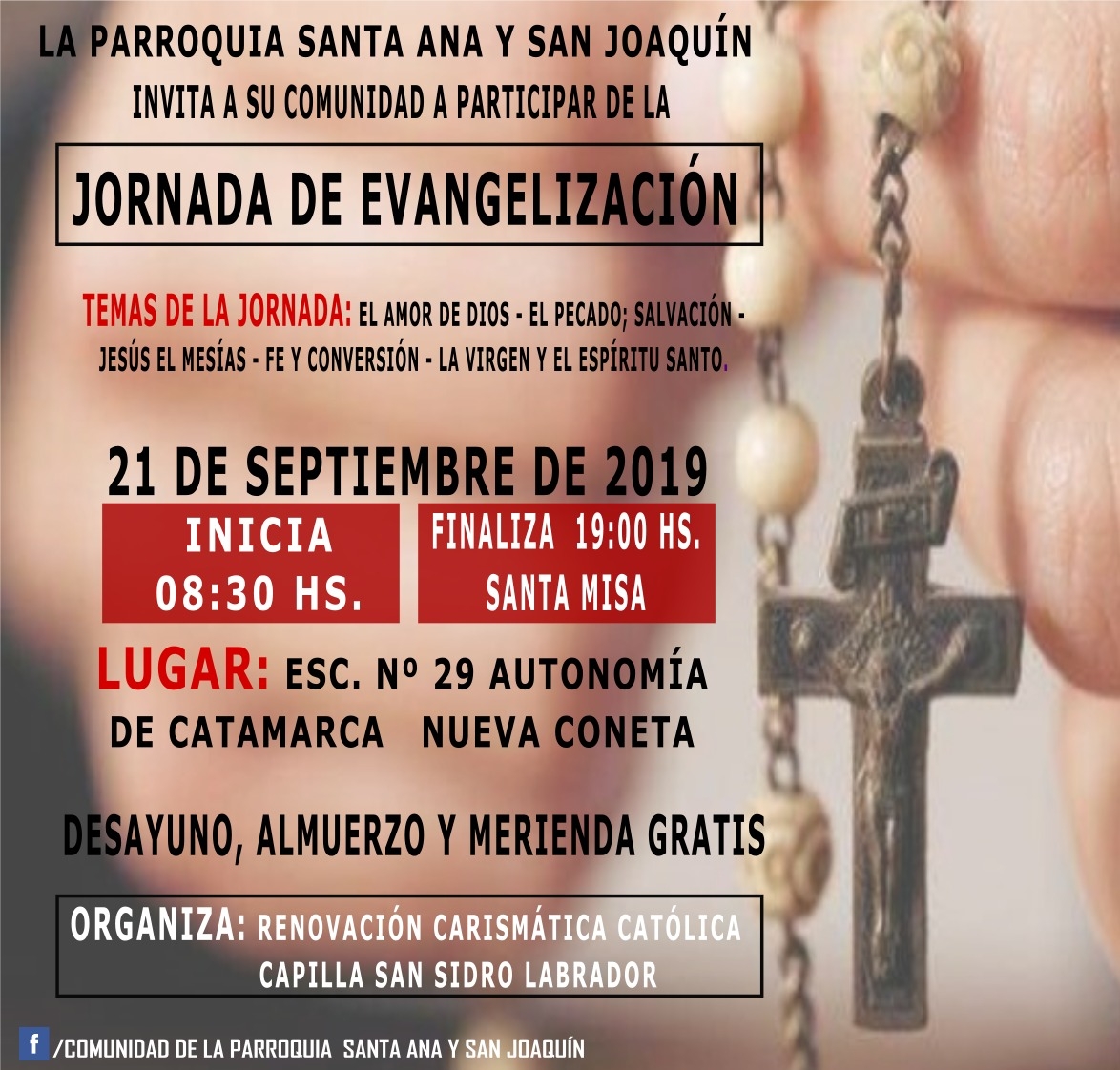 La misma dará inicio a las 8.30 y finalizará a las 19, con la celebración de la Santa Misa. La organización está a cargo de la Renovación Carismática Católica, capilla San Isidro Labrador.