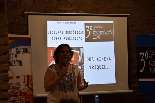 Posteriormente y para culminar con las actividades de aprendizaje, la Dra. Ximena Triquell, investigadora del CONICET y docente de la Facultad de Artes de la UNC, brindó una conferencia acerca de las lecturas semióticas sobre publicidad.