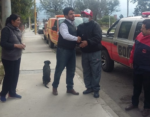 Tras salir del Hospital San Juan Bautista, Hernán Romero, acompañado por familiares y bomberos compañeros, visitó al personal de Defensa Civil y al director del organismo, Martín Castelli, para agradecer todo el apoyo y la colaboración recibidos durante el difícil momento de salud que tuvo que atravesar.