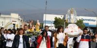Luego de arribar a la plaza 25 de Agosto, se dispusieron para marchar hacia el Santuario Mariano, donde participaron de la celebración de la Santa Misa, presidida por el Obispo Diocesano, Mons. Luis Urbanc, y concelebrada por los párrocos de Nuestra Señora de Luján, Pbro. Guillermo Chanquía, y de Santa Ana y San Joaquín, Pbro. Dardo Olivera.