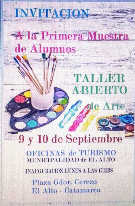 El Alto (C) - Mañana lunes 9 y marte 10 de septiembre se llevará la primera muestra de alumnos de taller de arte.