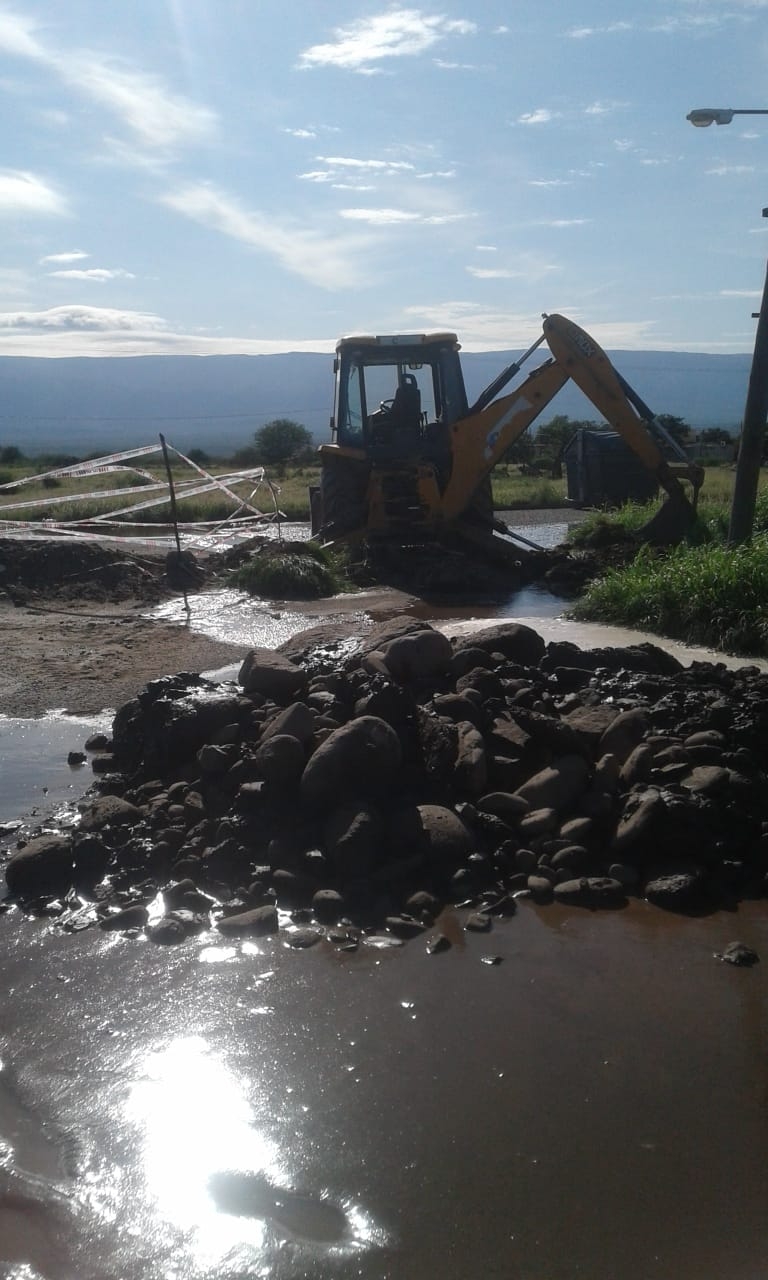 Los operarios de Aguas de Catamarca están trabajando en la reparación de un caño roto que afecta el servicio en el Barrio Antinaco.