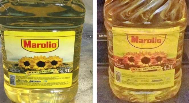 Se trata de botellas cuyos rótulos expresan: “Aceite de Girasol, Marolio, Elaborado y Fabricado por Vicentin SA. LC. calle 14 nro. 495, Avellaneda, Santa Fe, envase de 4.2 lts. y en relieve inverso con la leyenda vertical Caracas”. La ANMAT pudo corroborar que se trataba de mercadería falsa que “utiliza información de un alimento genuino, resultando ser en consecuencia un producto ilegal”.