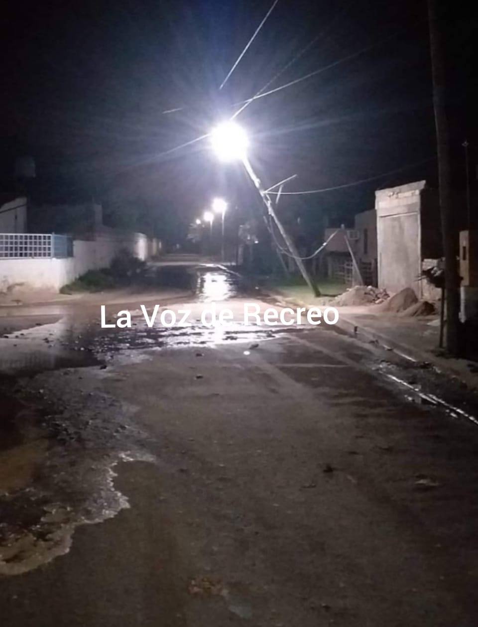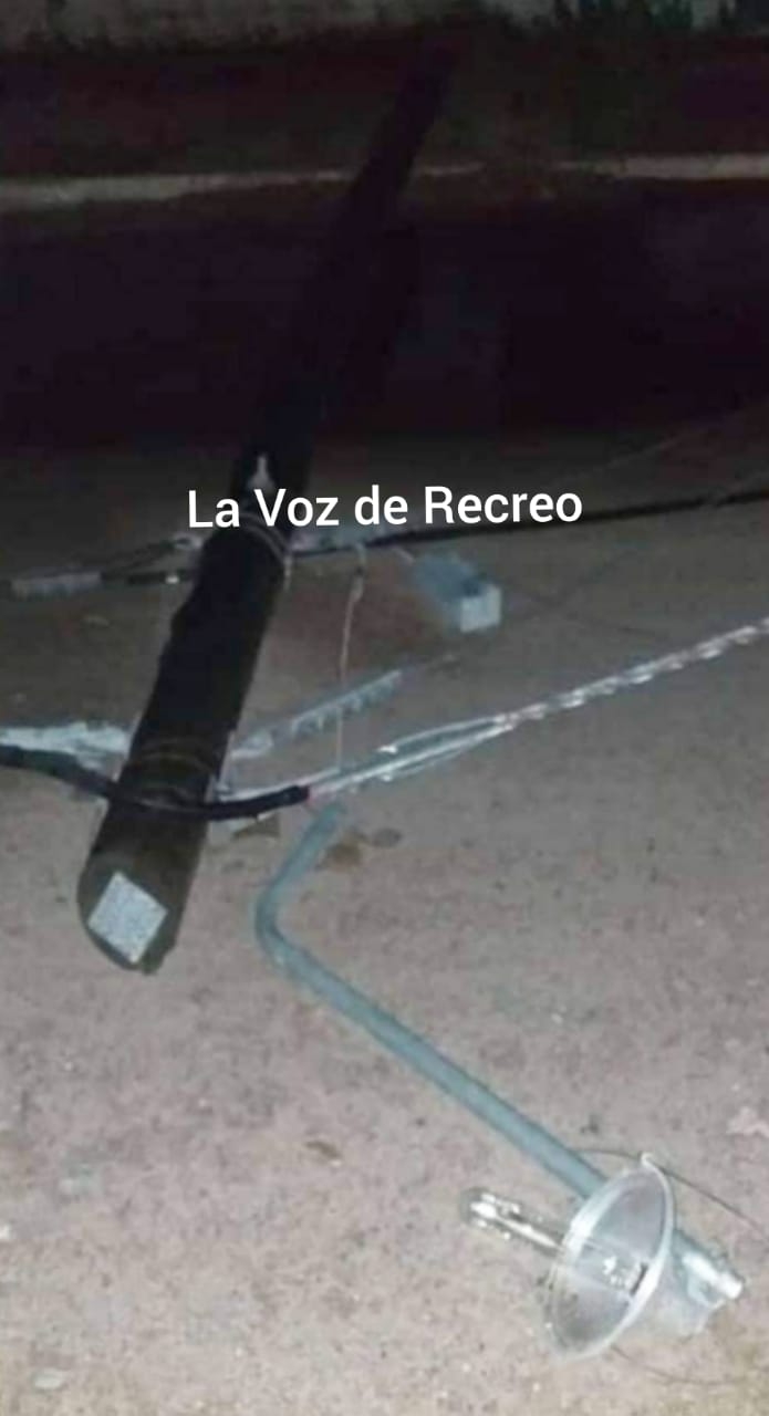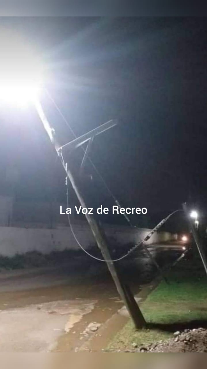 Se alerta a los vecinos de Recreo que hay cables cortados, y algunos de ellos, en la calle, por lo cual solicitan no circular por el sector ya que dichos postes tienen luminarias del alumbrado público.