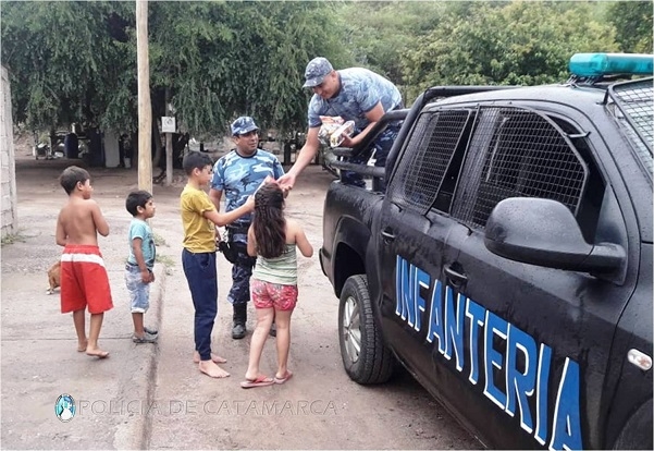 Los uniformados visitaron a niños en el barrio 140 viviendas de la localidad de San Isidro y al Hospital de Villa Dolores, Departamento Valle Viejo, como así también a Sierra Brava de la localidad de La Tercena, 20 viviendas Pomancillo Oeste y Collagasta, en Fray Mamerto Esquiú.