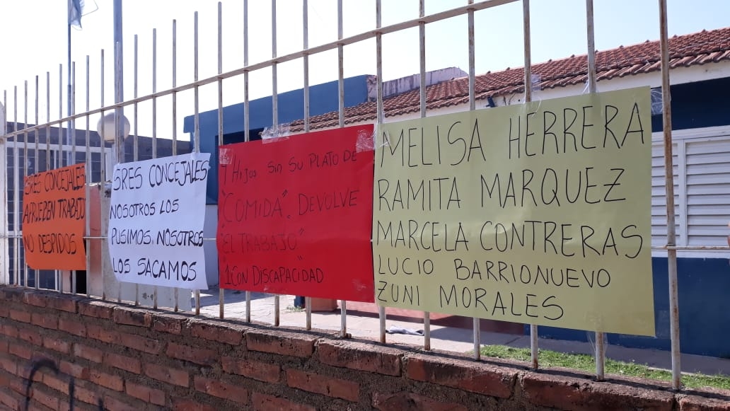 En principio, la manifestación se llevó a cabo frente al edificio del Concejo Deliberante donde hubo claros mensajes para los concejales con cartelería que colocaron en las rejas.