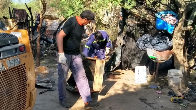 Fernando Castillo, responsable del área de Atención al Vecino, precisó que “se realizaron tareas tendientes a acelerar la recuperación del lugar, retirando elementos quemados, despejando el área y trasladando material para la reconstrucción de la vivienda”.