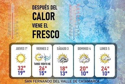 La respuesta varía según la zona. En las regiones Oeste y Puna no hay chances de lluvia, mientras que en los llanos de la región Este y en el Valle Central las probabilidades son muy bajas, pero no nulas. Será en las sierras más húmedas donde tendremos mayores probabilidades de precipitaciones, como lo son las sierras Ambato, Ancasti, Gracián norte, Balcozna, Potrerillo, Narváez y Aconquija. Estas lluvias podrían darse durante el sábado solamente, especialmente por la mañana.