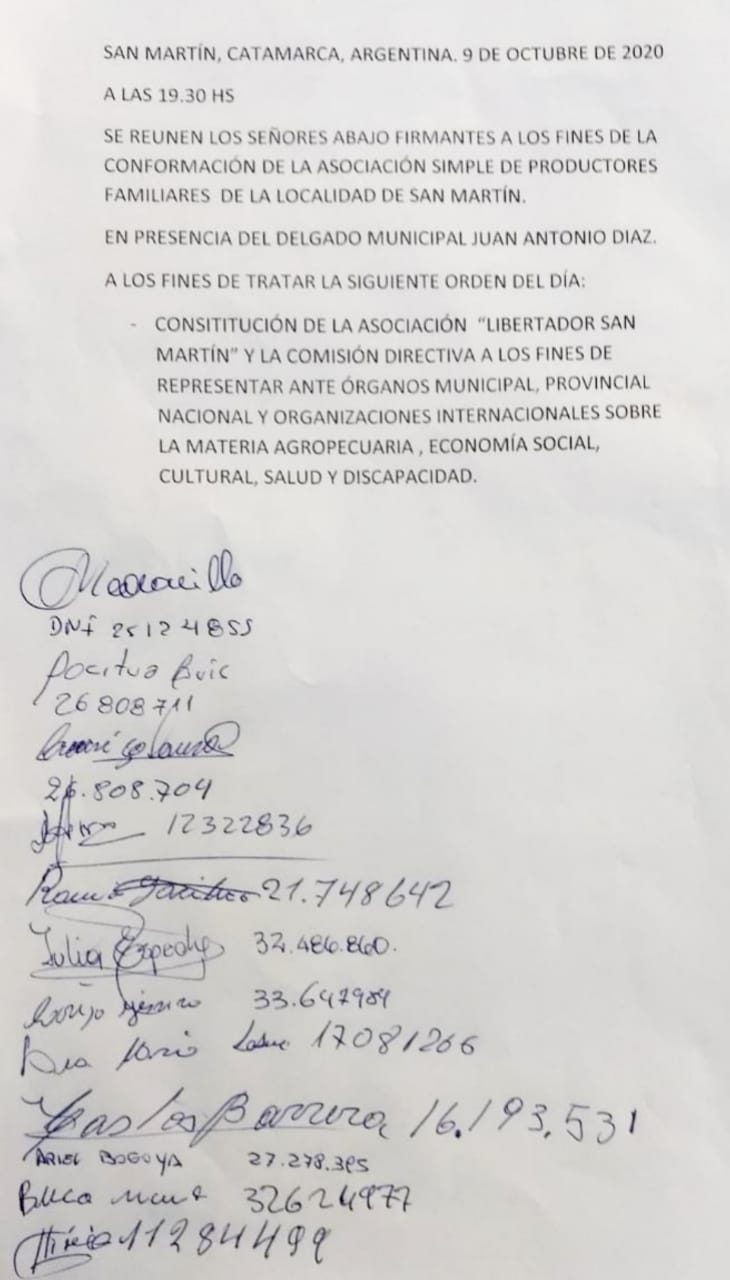 La materia de la asociación es agropecuaria, economía social, cultural, salud y discapacidad.