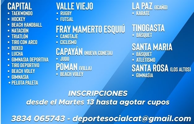Además, desde la Secretaría de Deportes, se informa que los interesados se podrán inscribir por medio de WhatsApp al número telefónico, 3834 065743.