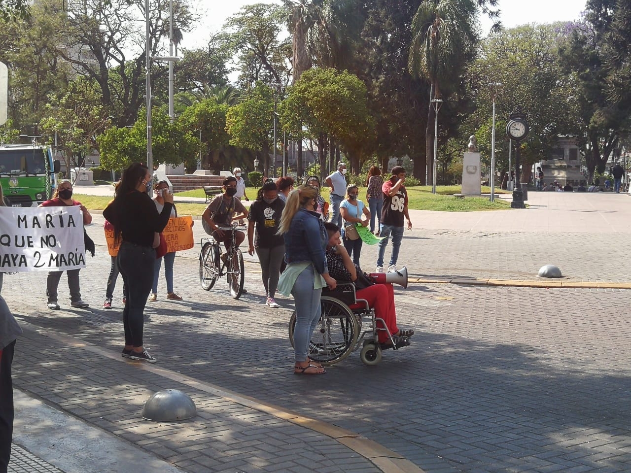 Esta protesta se lleva a cabo en una de las esquinas de la plaza principal, en República y Sarmiento, por lo cual se debió interrumpir el tránsito.